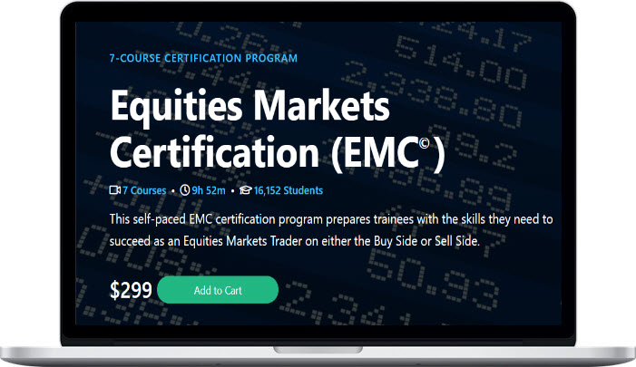 This self-paced EMC certification program prepares trainees with the skills they need to succeed as an Equities Markets Trader on either the Buy Side or Sell Side.
